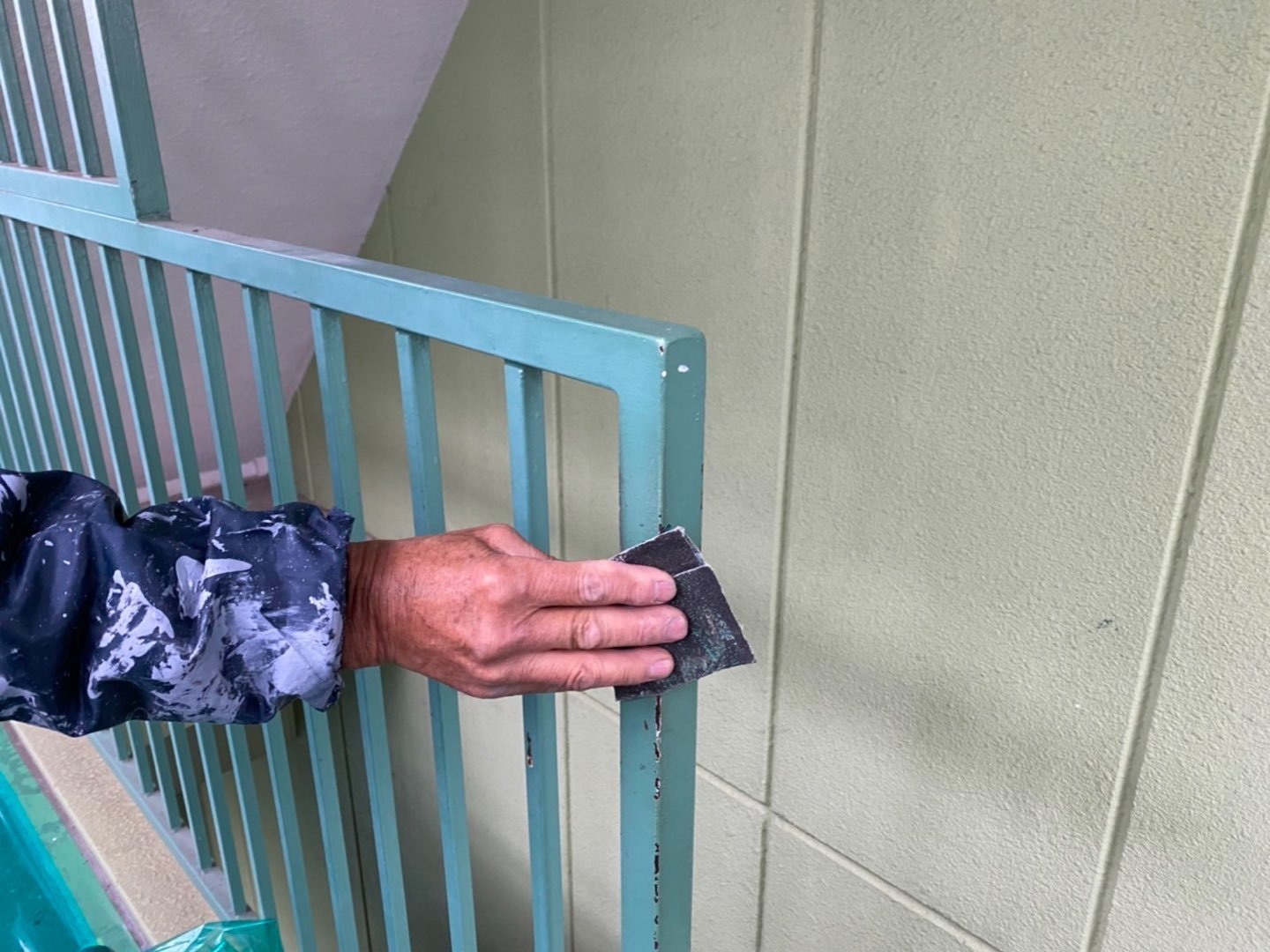 鉄部の下地処理アパートの場合、施主さんが近所にいない限り作業どういうふうにしている方なかなか見にも来れないので写真にて説明しています 最近はカメラ要らずで携帯が便利ですね